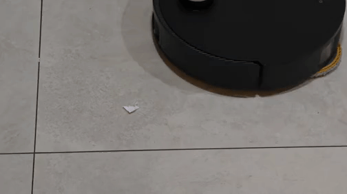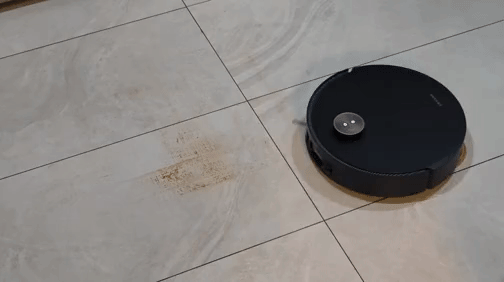 一个是难度比较高的干湿混合场景,在极致清洁+扫拖模式下,Matrix10 Ultra采取的不是“一遍过”的做法,在识别到地面上的大面积脏污后,它是先抬起扫刷和拖布,通过大吸力+滚刷将大颗粒的零食碎吸走,最后再通过扫拖将残余的酱油污渍带走。