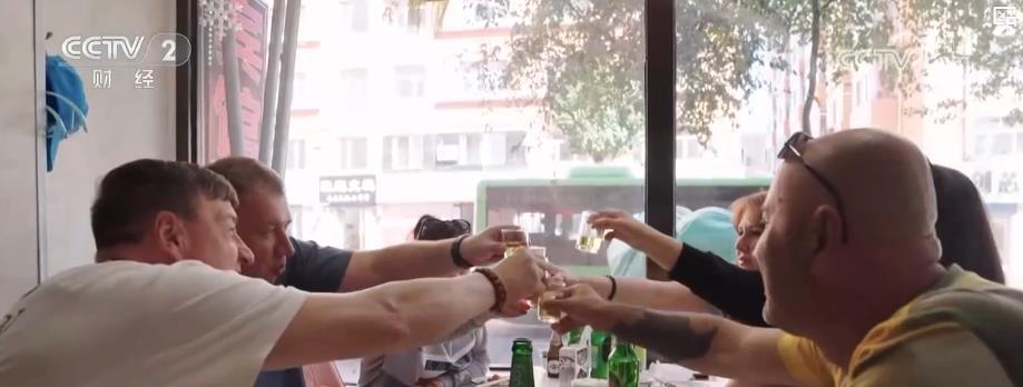 清晨的早市上,俄罗斯游客围着摊位挑选新鲜水果、特色早餐,“配着啤酒吃包子”成为了俄罗斯游客的标配。