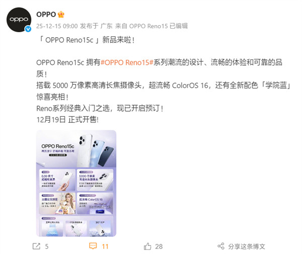 Reno15c整体外观保持了系列家族式设计,包括今年比较经典的星光蝴蝶结配色,同时也采用了旗舰级的冷雕玻璃工艺+金属中框。
