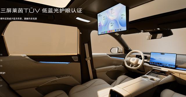 这款别克至境界E7真正的亮点在于内饰设计,车内采用了大量的米色内饰,看起来非常的温馨,别克GL8其实也是类似的设计。更为关键的是,娱乐系统真的非常丰富,15.6英寸的中控大屏,高通骁龙8775的芯片,还匹配了全液晶的行车电脑,50英寸的HUD数字抬头显示功能,甚至车内的流媒体内视镜同样匹配全面。